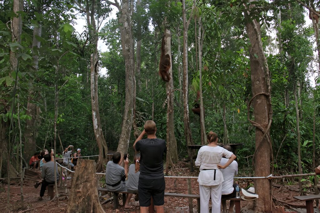 Feeding camps were established to provide orangutans with supplemental food, reducing the need for them to venture outside the park boundaries. Each camp has designated feeding times, with rangers calling the orangutans to let them know when food is available. This ensures that even when tourism levels fluctuate, the feeding continues, promoting the welfare of these primates.