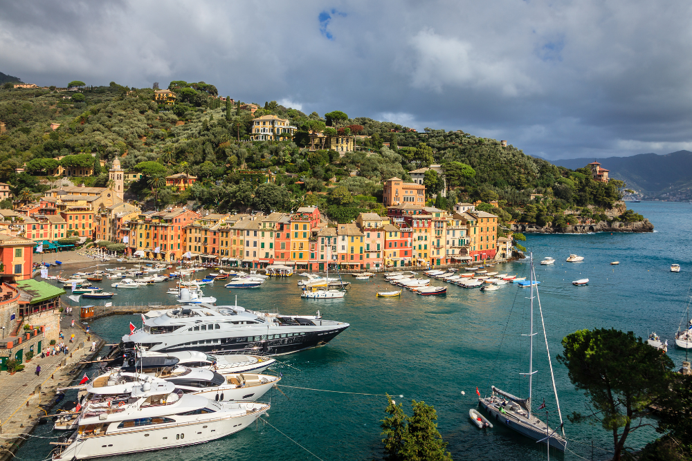 Just a short distance from Cinque Terre, Portofino is one of the most glamorous towns on the Italian Riviera. Known for its luxury yachts, upscale boutiques, and colorful harbor, Portofino is a favorite of celebrities and travelers seeking a chic escape.