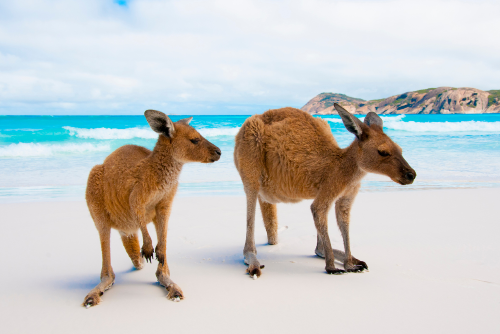 Lucky Bay, located in Cape Le Grand National Park, is famous for its pristine beaches and clear waters. It’s also a hotspot for kangaroo sightings.